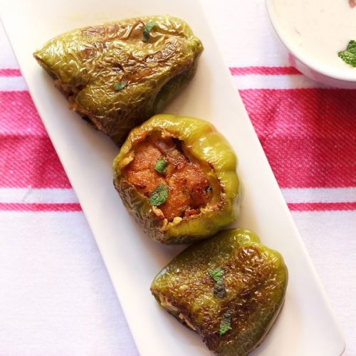 भरवा शिमला मिर्च रेसिपी यह पंजाबी स्टाइल की स्वादिष्ट भरवा शिमला मिर्च रेसिपी है। इस रेसिपी में शिमला मिर्च (भरवा शिमला) को मसालेदार मैश किए हुए आलू से भरा जाता है।